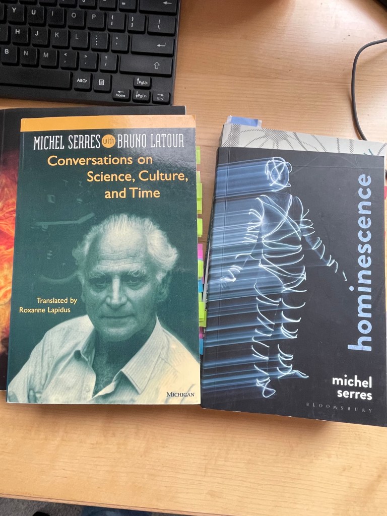 I followed up by reading the Five Senses. Reading Serres, I soon found, is hard work, at turns exhilarating, bewildering, and frustrating. It is worth it for the moments where a new idea opens up or a stunningly new way of thinking about an old idea. Serres begins the Five Senses with a gripping account of when he was trapped in a burning ship in his time as a naval engineer. He struggled to escape through a narrow porthole and got stuck, his legs exposed to increasing heat, his face to freezing sea spray. He was able to wriggle out and survived. In an interview with Bruno Latour, he is scornful of Merleau-Ponty, the great thinker of embodiment, for still being too theoretical, too bound to his desk. When you read the opening of the Five Senses, you can see what he means – and that he is dedicated to a quite different way of thinking philosophically with the world, and with what it is to be human now.